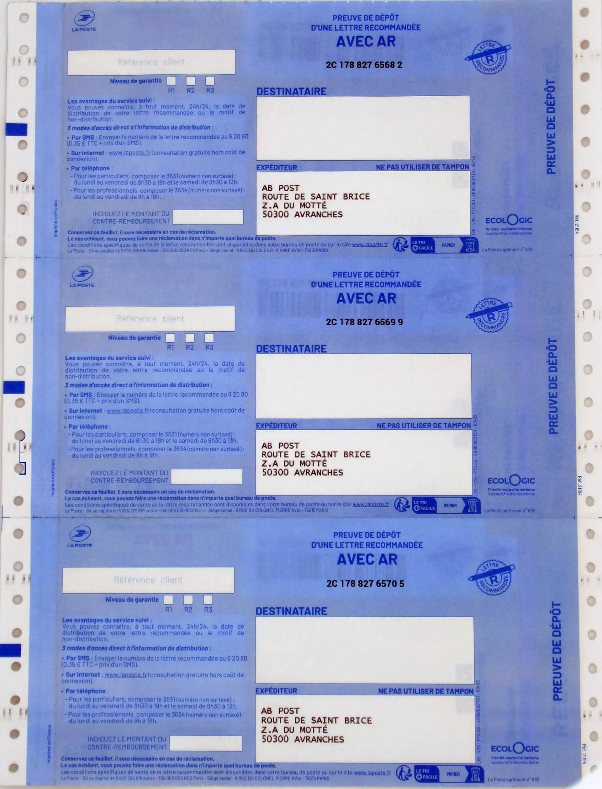 Voir la gammeImprimé recommandé A4 nationaux avec ou sans AR, avec ou sans code à barre, vierge ou personnalisé